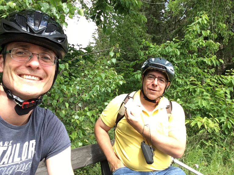 Am Morgen holten wir noch den B-Teil vom Trelleborg-Power-Trail und schauten uns den Hafen in Gislöv an. Dort besuchten wir das Restaurant, genossen einen Toast, Kaffe und Coca-Cola und etwas später auch Glacé. Danach fuhren wir nach Symgehuk und cachten am südlichsten Punkt von Schweden mit Karin und Leif und genossen Kaffee natürlich für Karin und Leif und Limonade für Karin und Marc und für alle Kuchen. In der Rökeri kauften wir geräucherte Makrelen und genossen anschliessend in der Jugendherberge einen feinen Znacht mit Brot, Fisch, Kartoffeln, Salat, Tomaten, Rentier-Fleisch und Käse.