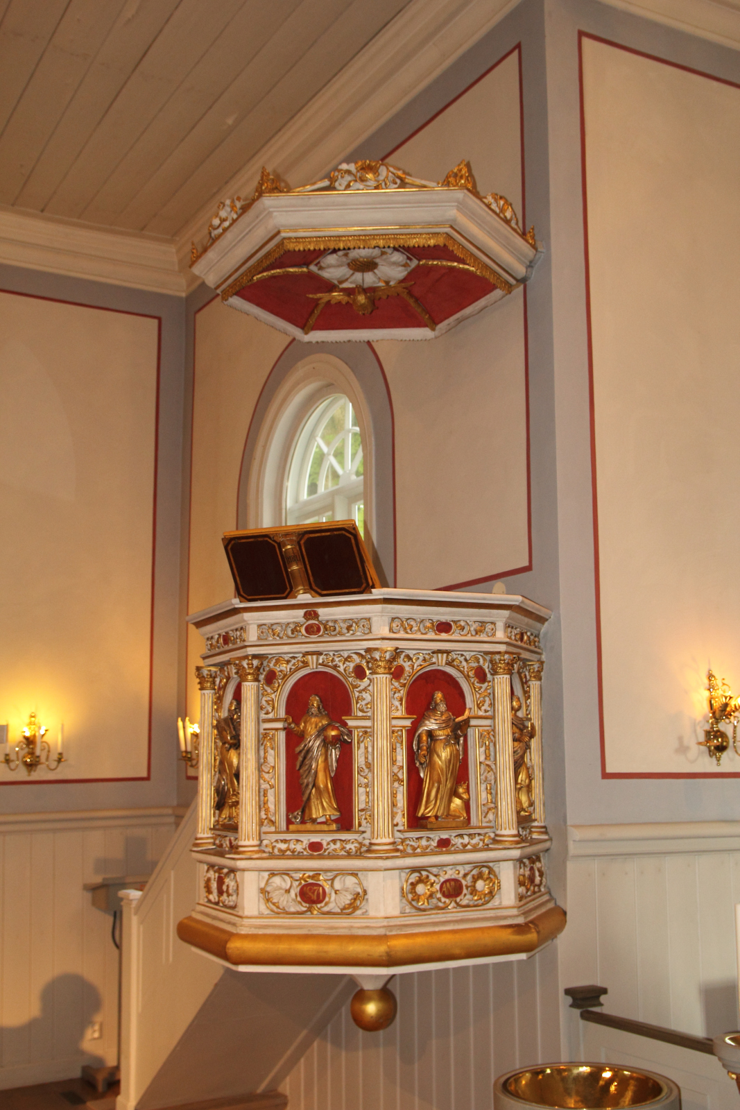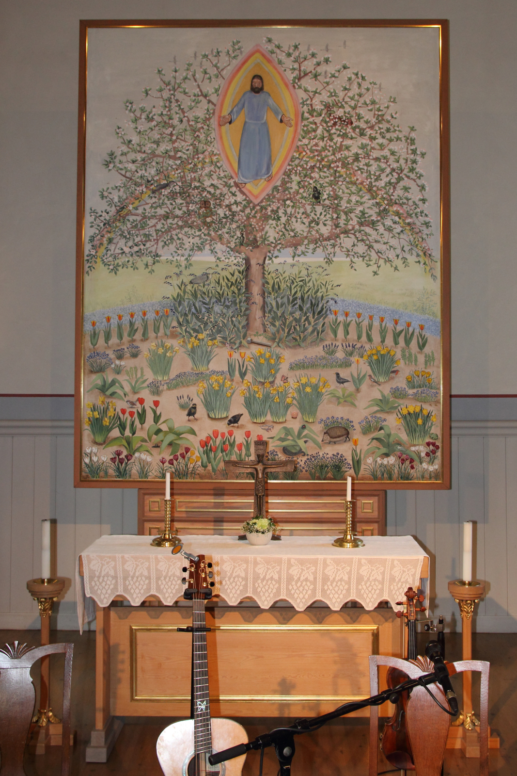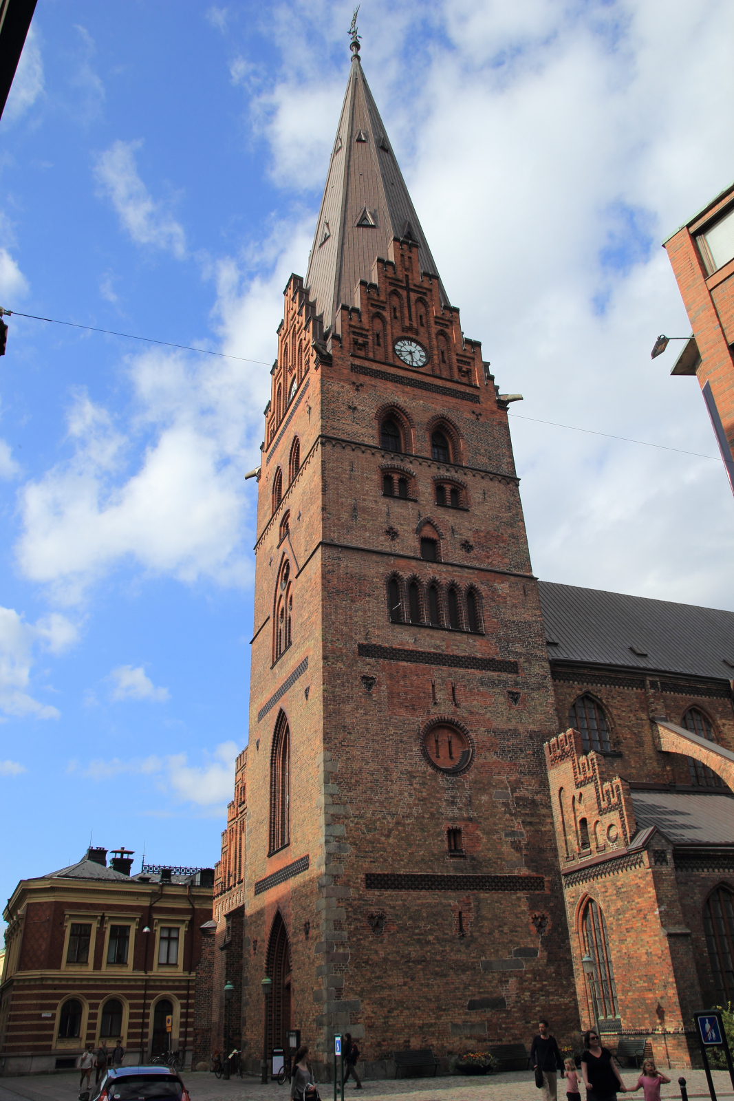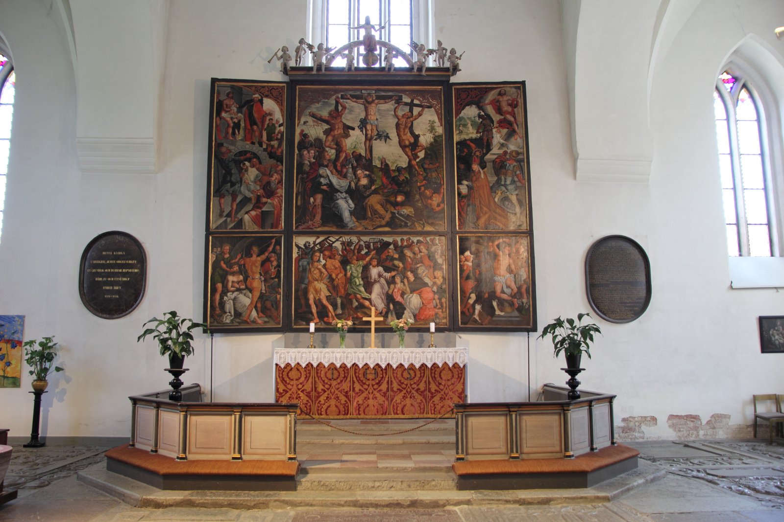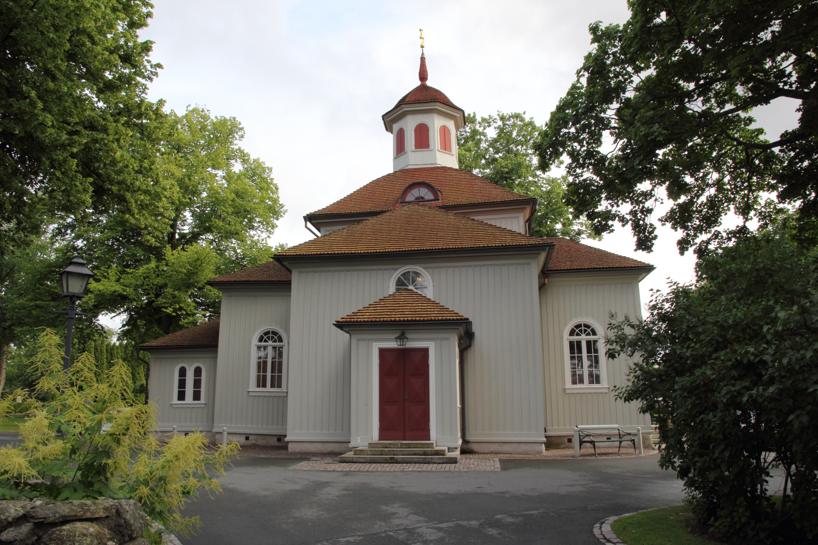 Wir kamen bei der Kirche in Kumlaby vorbei. Sie gehört zu den ältesten Kirchen Schwedens. Um 1135 wurde sie gebaut. Der Kirchturm wurde erst später errichtet, sowie auch die Sakristei. Die Wandmalereien aus dem 15. Jahrhundert wurden überkalkt, 1922 wurde die Kirche restauriert und man versuchte die Malereien wieder freizulegen, jedoch konnten sie nicht vollständig restauriert werden. Bei einigen Malereien kann man aber trotzdem was erkennen: über der Tür zur Sakristei sieht man oben Christus als Heiland und Herrn der Kirche, der die Erde (Ring mit Häusern, Hügeln, Gewässer und Wanderern) in seiner linken Hand hält. Links steht Petrus mit dem Himmelsschlüssel und rechts Moses mit den Hörnern des Heils. Im Chorraum befindet sich auf auch eine sternenförmige Schale, die Piscina. In diese Schale, die in den Kirchengrund mündete, goss man übriggebliebenes Tauf- und Weihwasser sowie nach Spülung der Abendmahlsgeräte das Spülwasser. Wenn man nun vom Chorraum Richtung Kirchenschiff schaut sieht man auf dem Bogen die 10 Jungfrauen, die 5 klugen mit Feuer und die 5 törrichten ohne.