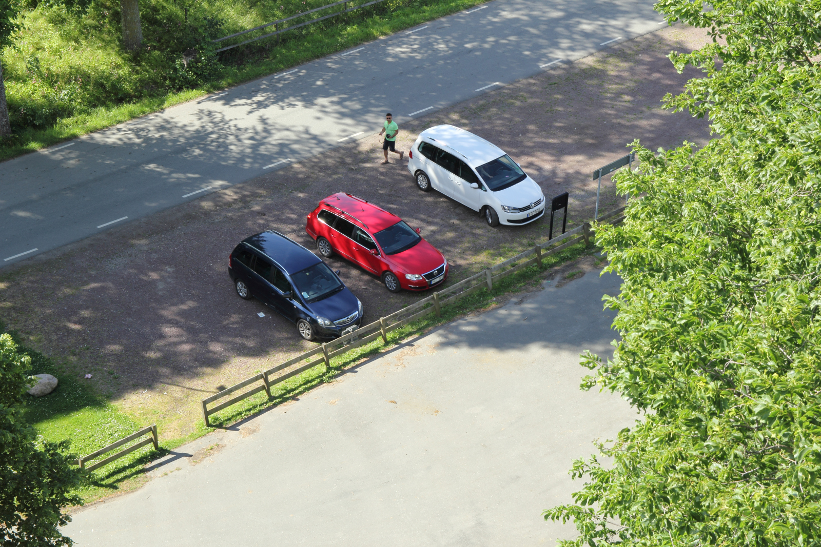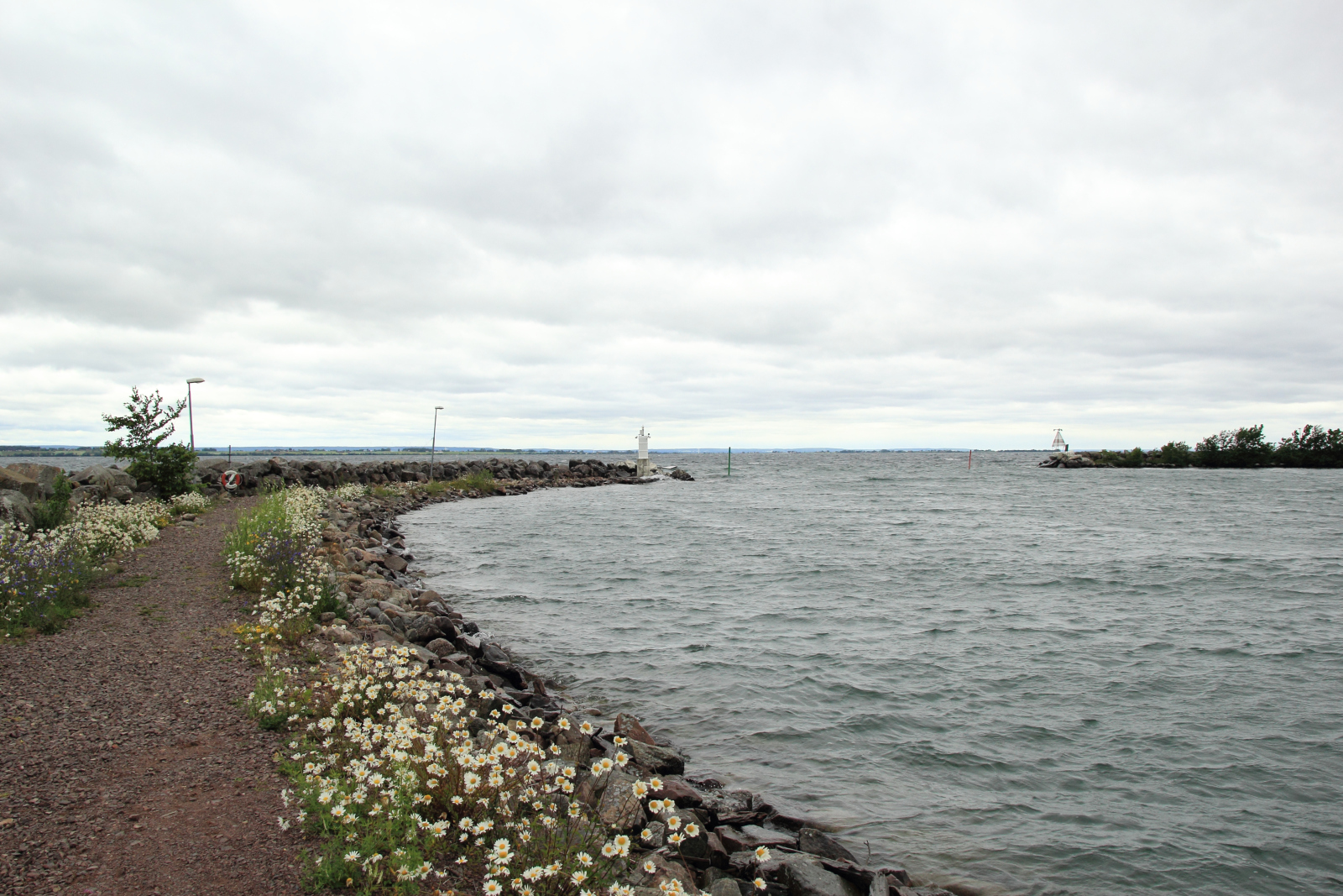 Judihui! Heute morgen schien die Sonne! Endlich wieder einmal. Wir machten uns nach dem Frühstück direkt auf zur Insel Visingsö. Mit der Fähre ging es von Gränna nach Visingsö. In Gränna waren wir gestern, doch auf die Insel wollten wir nicht bei diesem kalten und windigen Wetter. Das Warten hat sich gelohnt. Wir fuhren zuerst an’s nördliche Ende der Insel, sie ist insgesamt 17 km lang, um dort ein paar Caches einzusammeln. Da wir keinen vernünftigen Platz für unser Cachermobil fanden, hielten wir erst beim dritten Anlauf.
