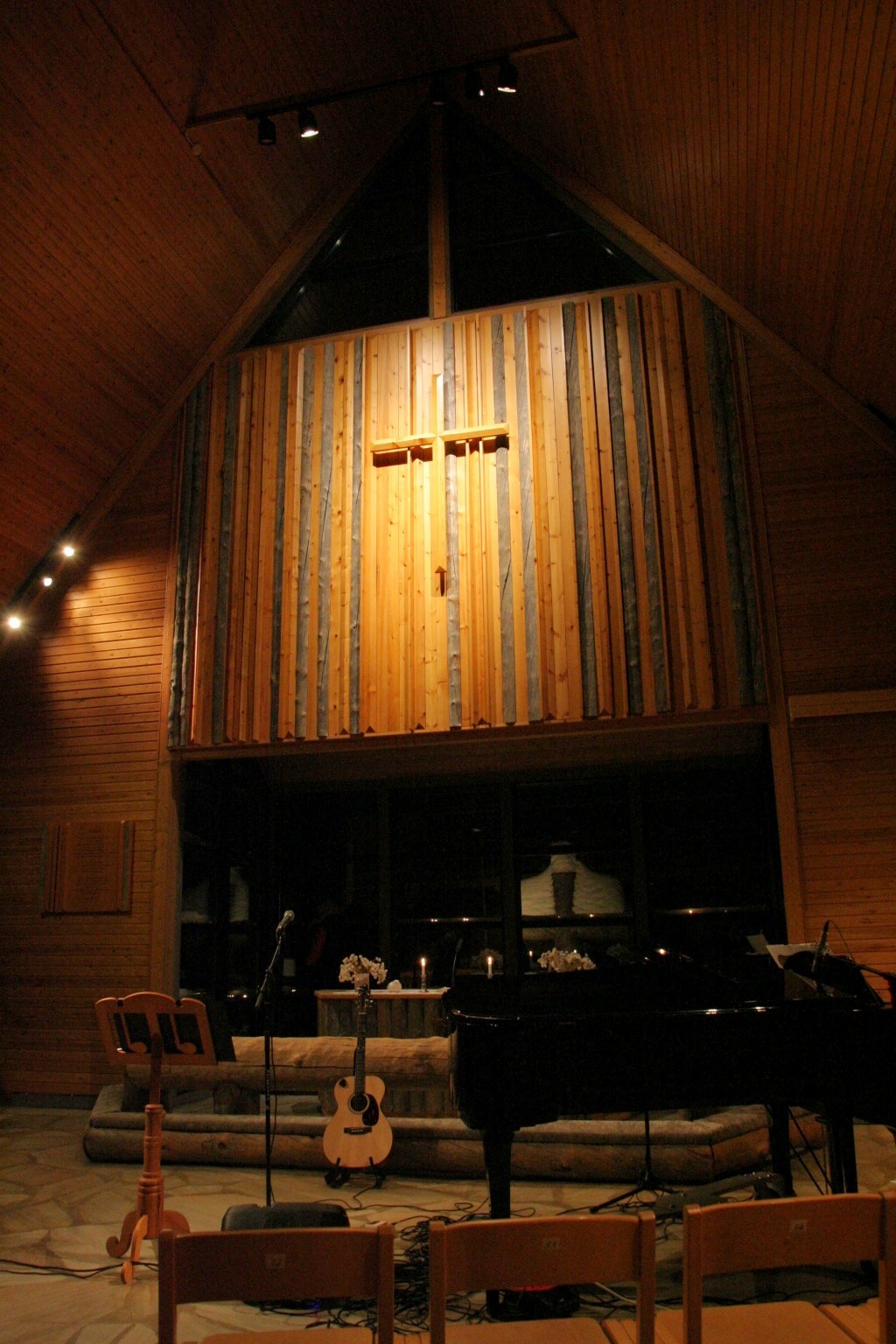 Um 18 Uhr holte uns ein Taxi ab, das mit uns durch die Nacht bretterte nach Phyä ( der Nachbarort, der 30 Minuten entfernt ist). Dort liess der Fahrer uns bei der Nortern Light- Chapel hinaus. Dort besuchten wir ein Konzert von Saila Seurujärvi mit Elina (Gesang, Gitarre und Flügel). Die Musik war wunderschön. Die einzigen Worte, die wir verstanden und schon mal gehört hatten, waren Jesus, Halleluja, maranata. Nach dem Konzert kamen wir ins Gespräch mit Gemeindegliedern und einer Pastorin, die von Helsinki für eine Woche dort Stellvertretung machte. Marc machte noch Fotos von der Holzkirche. Danach wurden wir in die Cafeteria, welche mich sehr an die Niederschwellige Drehscheibe, von der in Fehraltorf die ganze Zeit die Rede ist, erinnerte. So holt mich die Arbeit auch in Finnland wieder ein. Wir tranken eine warme Milch mit Schokolade, danach schauten wir uns bei den Büchern und CDs um. Da wir aber kein finnisch können, entschieden wir uns für ein Glässchen Cloudberry Gelée, in Schwedisch hyrtensylt. Um 21 Uhr holte uns das Taxi, wie abgemacht, ab. Um. 21:30 Uhr waren wir wieder zuhause und hatten 90 € für das Taxi, 20 € für das Konzert, 20€ für die CD mit finnischen, christlichen Liedern von Seila und 10 € für die heisse Schokolade und die Konfitüre ausgegeben. Den Abend liessen wir wiederum bei einer Folge „das Verbrechen“ ausklingen.