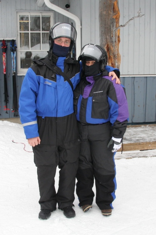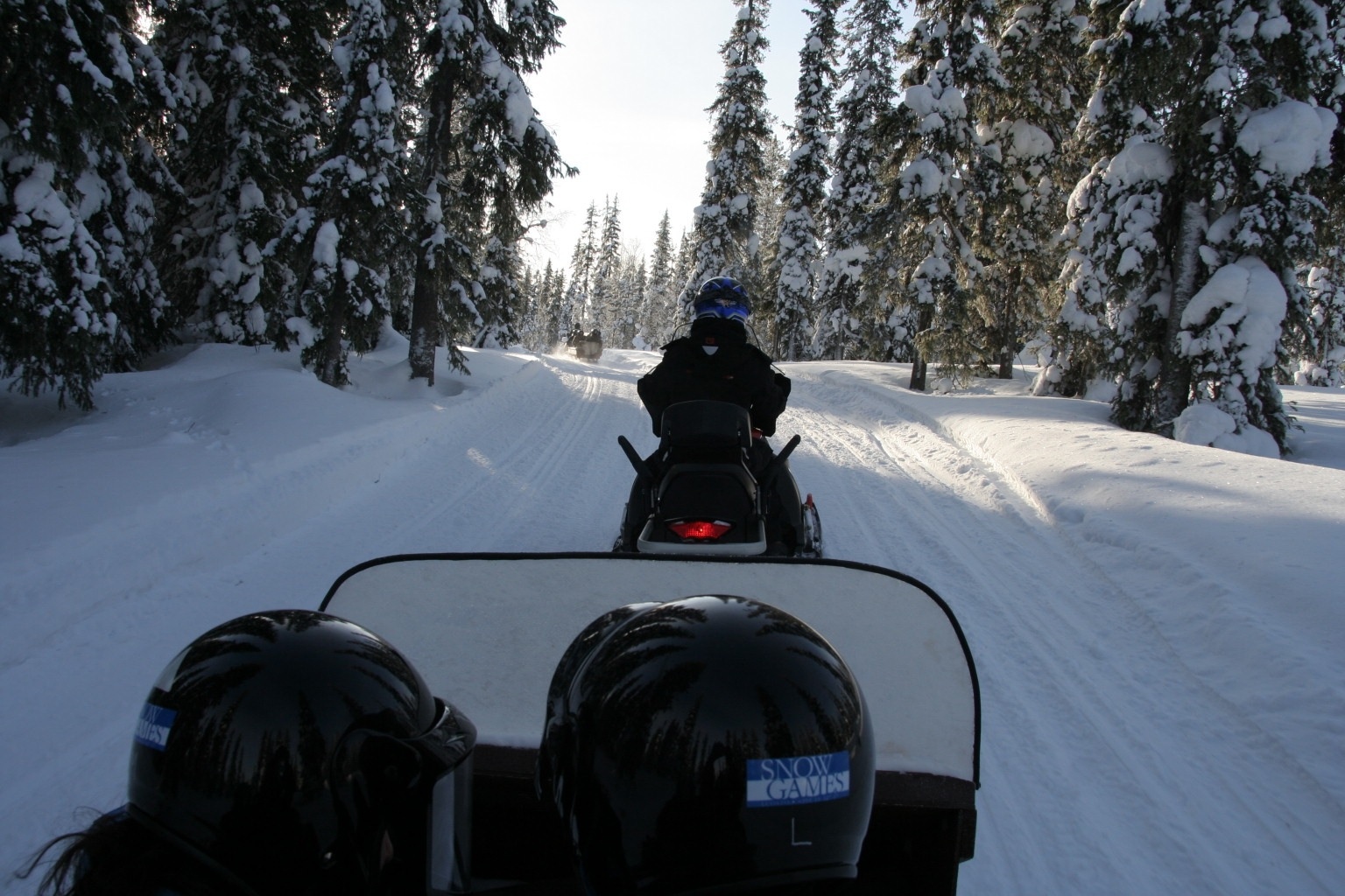Nach diesen Informationen durften wir uns in einen Schlitten setzen und uns von einem Renntier ziehen lassen, dies waren alles Männchen, da die Weibchen momentan trächtig sind. Es war wunderschön durch die verschneiten Wälder gezogen zu werden und den Renntieren beim fressen zu zusehen. Danach ging’s mit dem Snowmobile zurück nach Luosto. Der Rückweg gefiel auch Karin besser, da wir den Fotorucksack fest montierten am Snowmobile und das Visier einen Spalt offen liesen, konnten wir beide die rasante Fahrt geniessen.