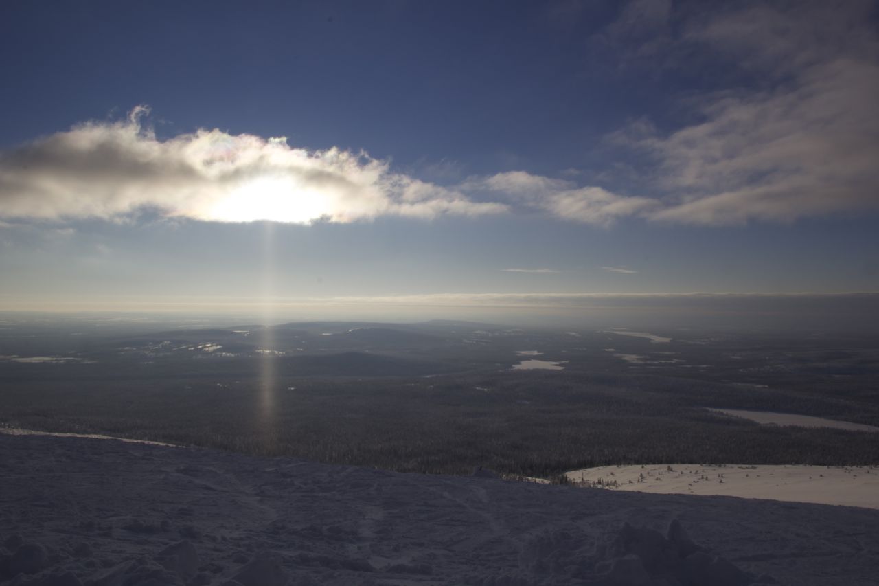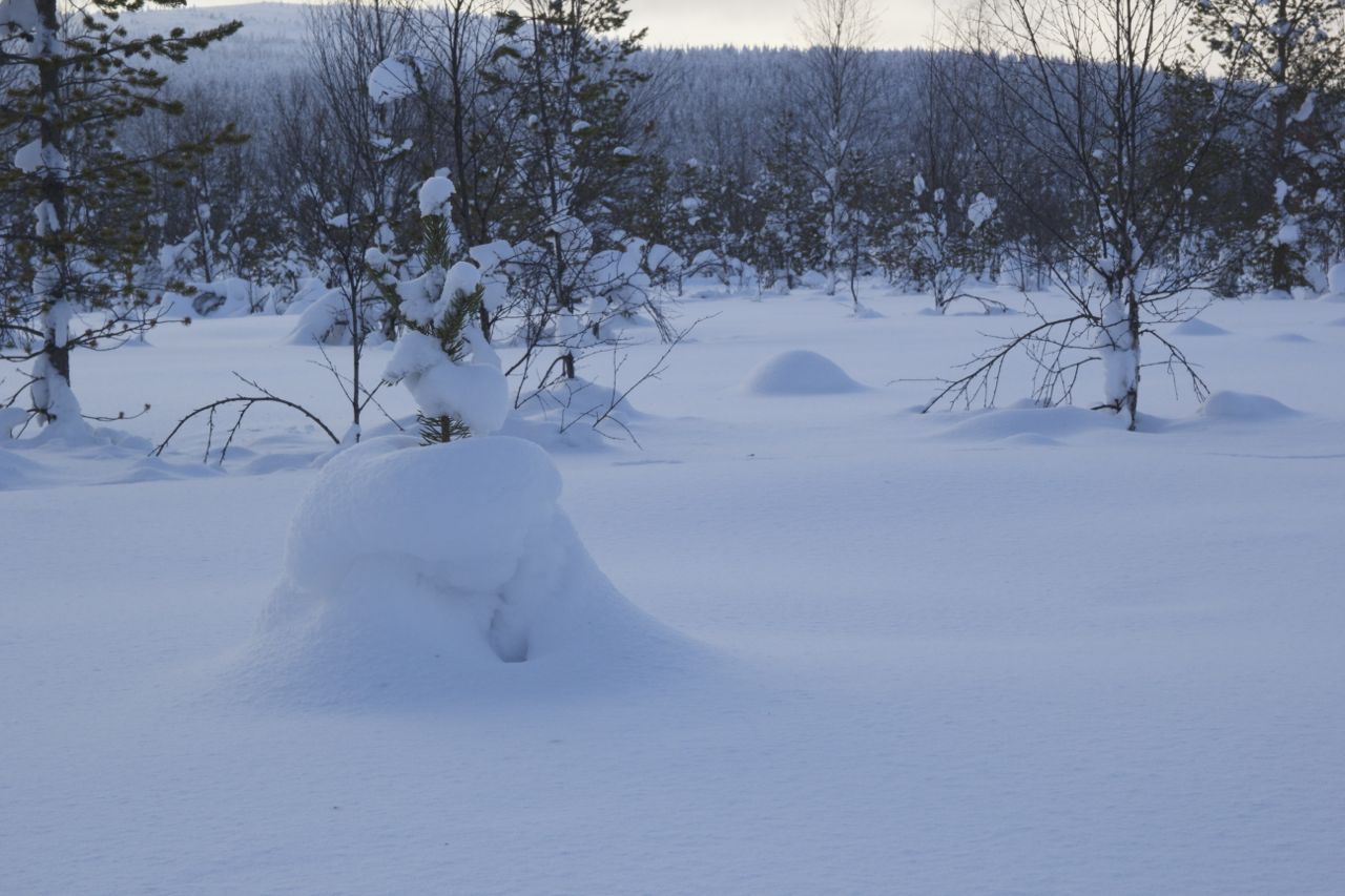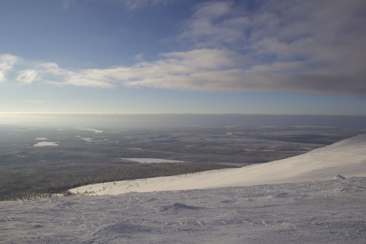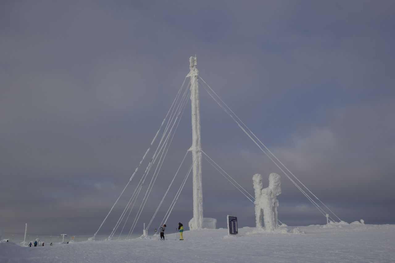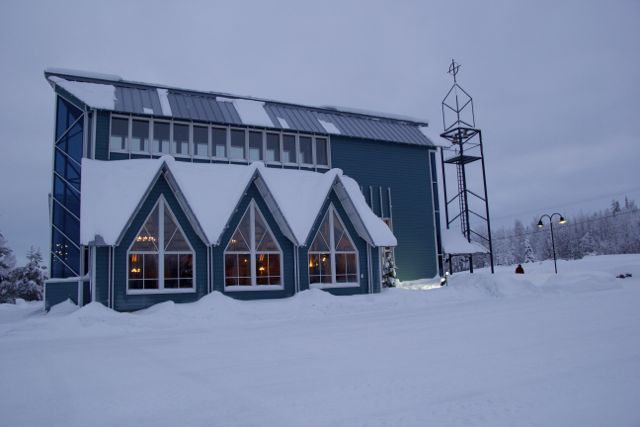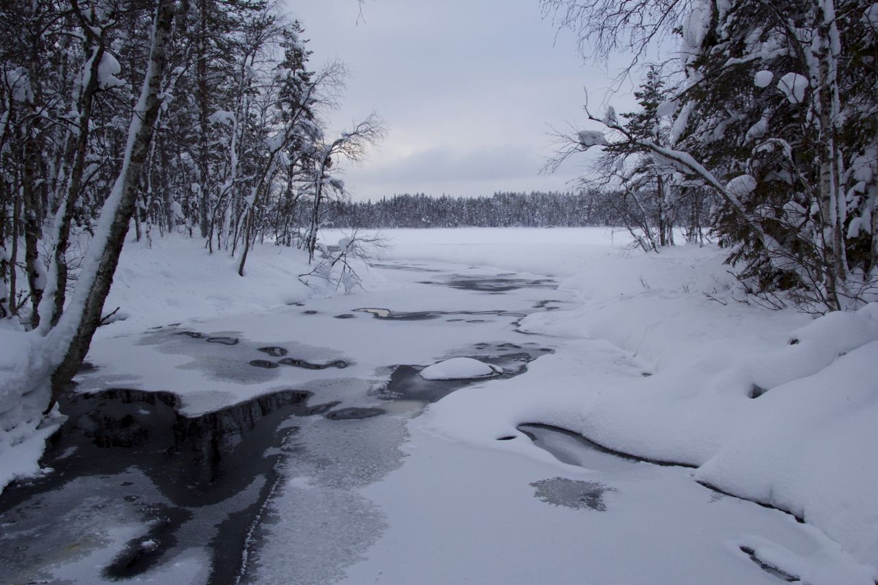 Am Nachmittag parkierten wir unser Auto bei der Kapelle und machten uns mit der Langlauf-Ausrüstung auf zum See Äkäslompolo. Dieser Ort hat seinen Namen aufgrund des Sees. Das Dorf ist um den See herum entstanden und im Winter ist dieser gefroren und auf dem Eis hat es eine Schneeschicht mit einer Loipe zum Langlaufen. So fuhren wir eine Runde auf dem See. Dabei kam uns unsere Langlauf-Lehrerin von Montag entgegen und lobte uns und freute sich, dass wir nun auf eigene Faust unterwegs waren. Sie hatte heute ihren freien Tag und war deshalb draussen unterwegs bei diesem schönen Wetter, sagte sie. So schön war das Wetter nicht, so grau war es noch nie, dafür aber nur -2 Grad.