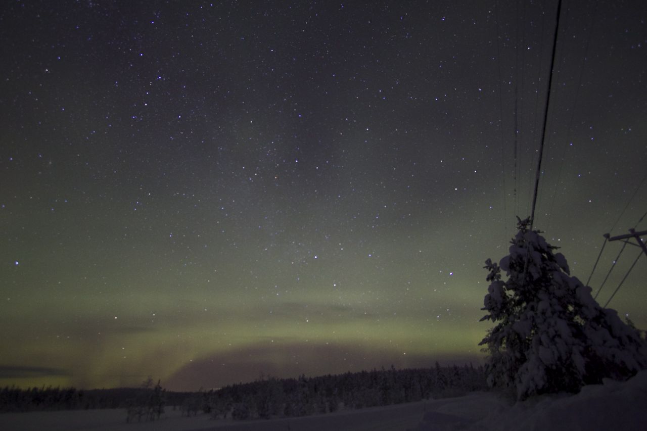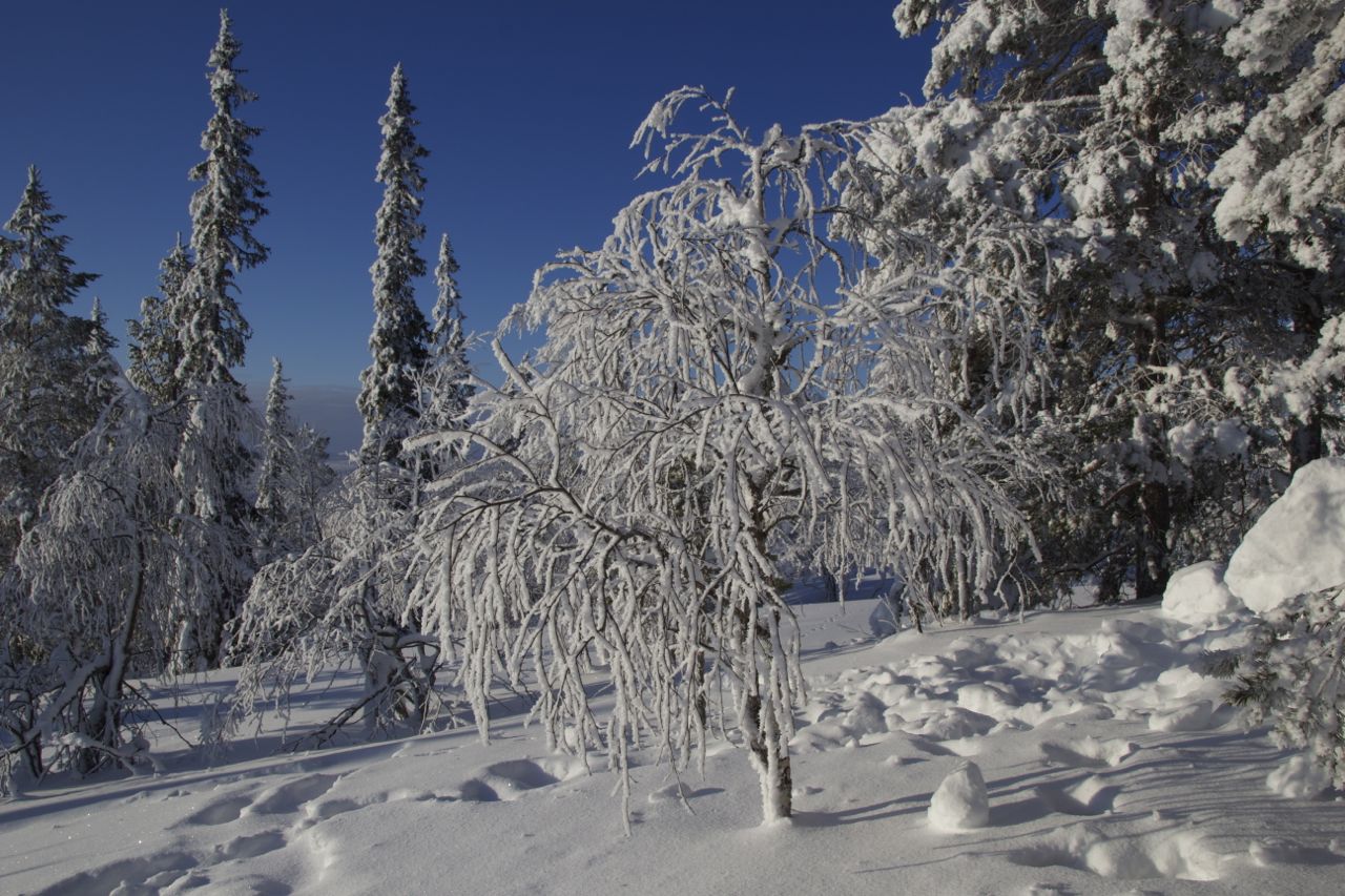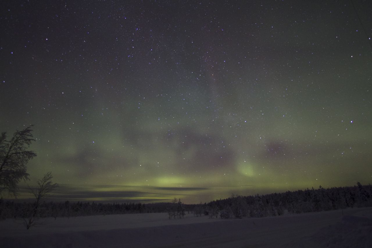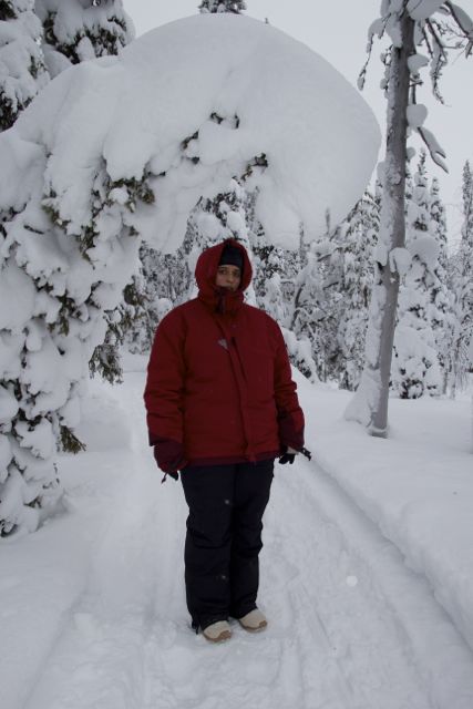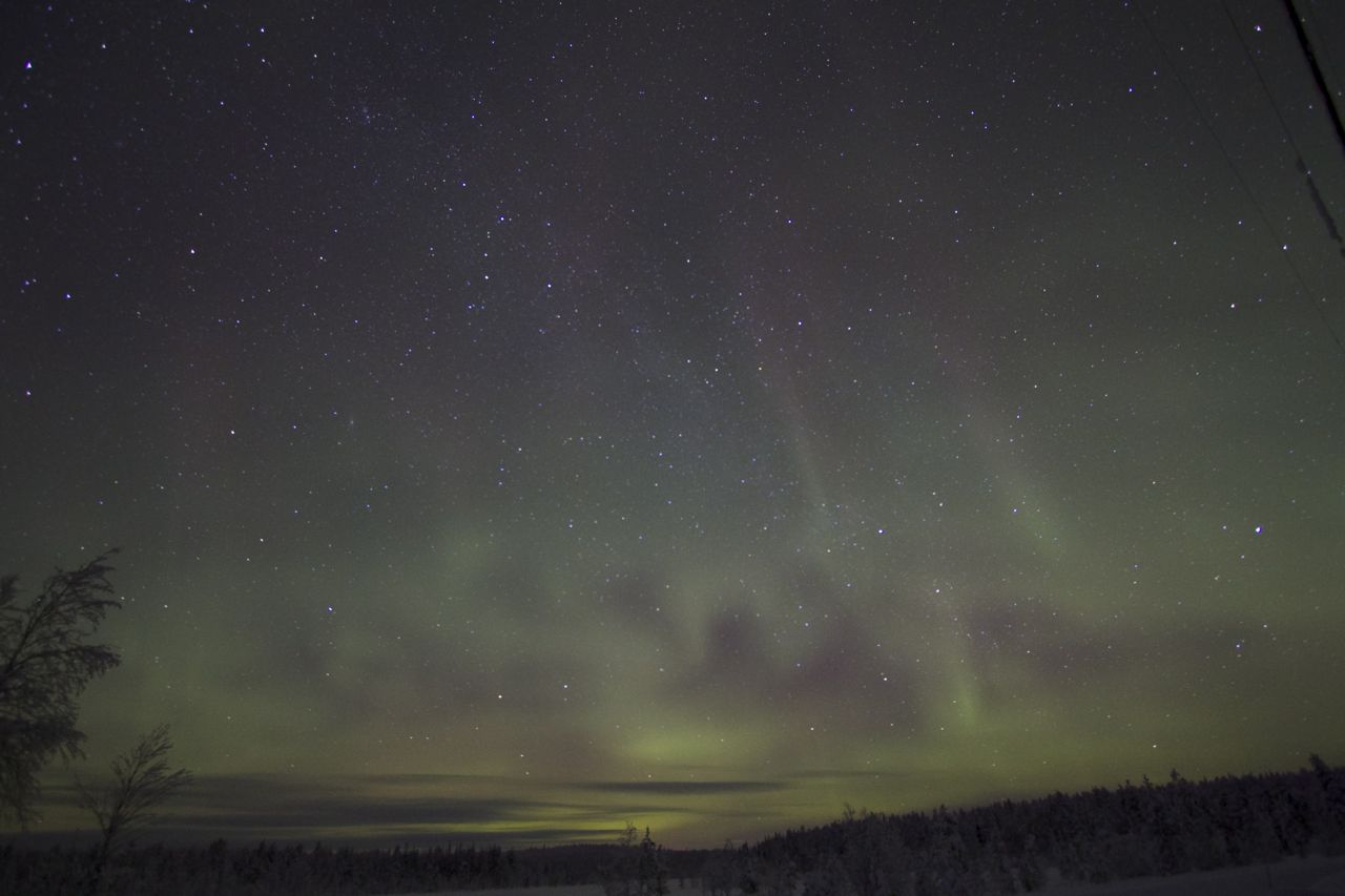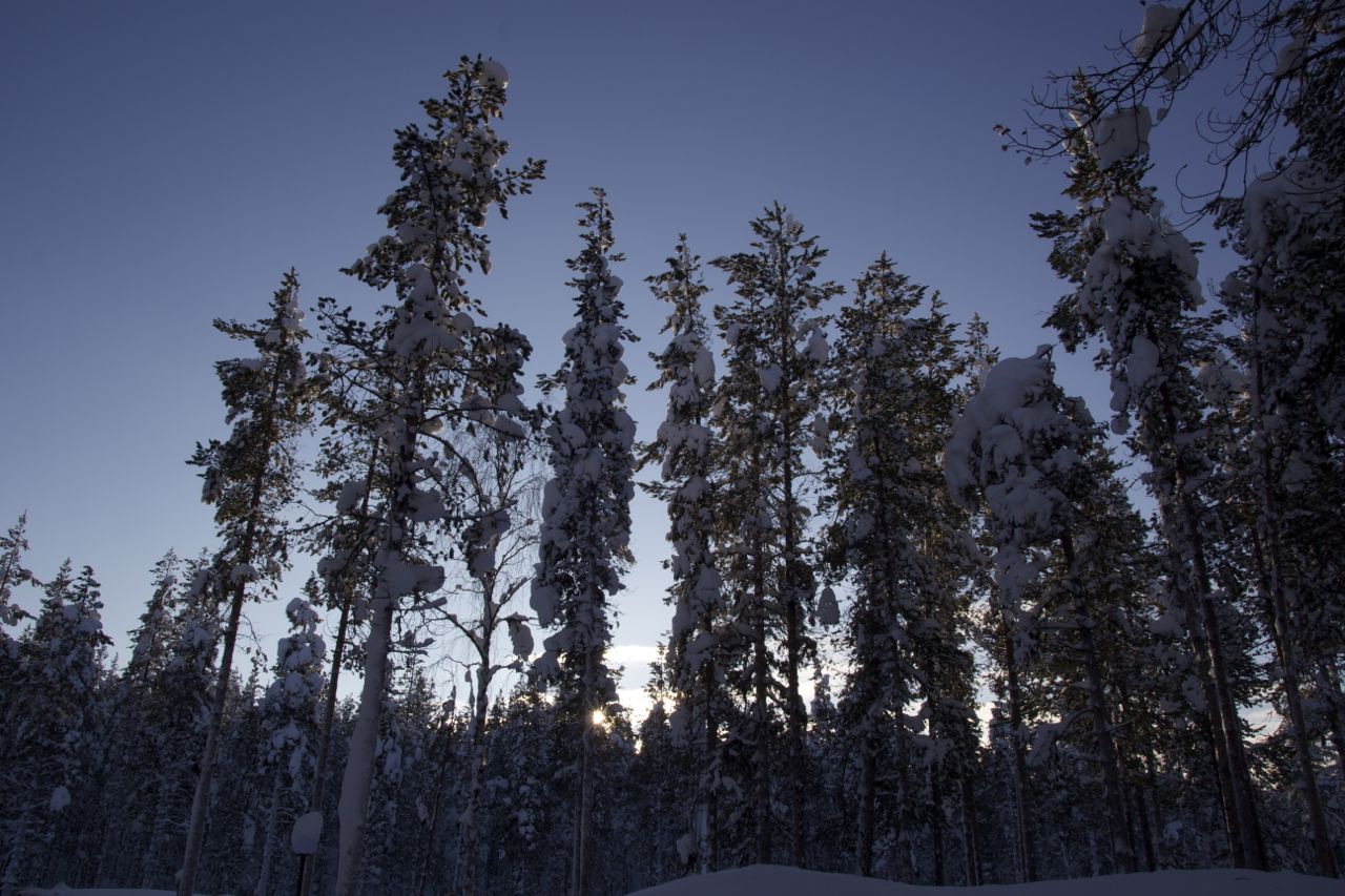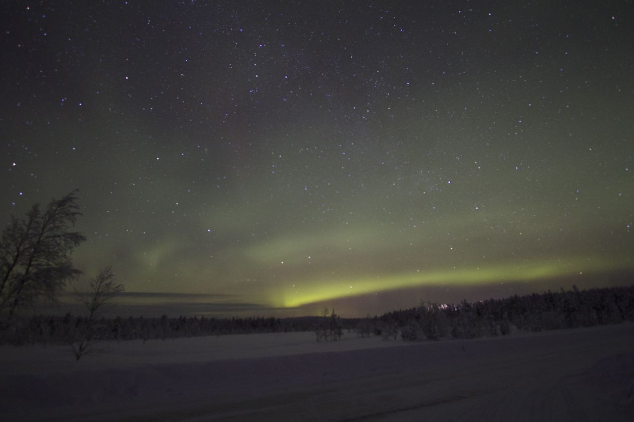 Am Nachmittag parkierten wir unser Auto bei der Kapelle und machten uns mit der Langlauf-Ausrüstung auf zum See Äkäslompolo. Dieser Ort hat seinen Namen aufgrund des Sees. Das Dorf ist um den See herum entstanden und im Winter ist dieser gefroren und auf dem Eis hat es eine Schneeschicht mit einer Loipe zum Langlaufen. So fuhren wir eine Runde auf dem See. Dabei kam uns unsere Langlauf-Lehrerin von Montag entgegen und lobte uns und freute sich, dass wir nun auf eigene Faust unterwegs waren. Sie hatte heute ihren freien Tag und war deshalb draussen unterwegs bei diesem schönen Wetter, sagte sie. So schön war das Wetter nicht, so grau war es noch nie, dafür aber nur -2 Grad.