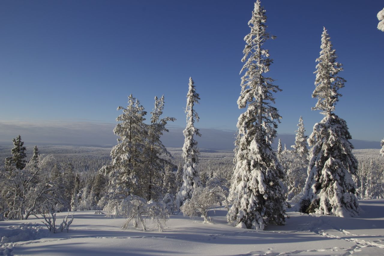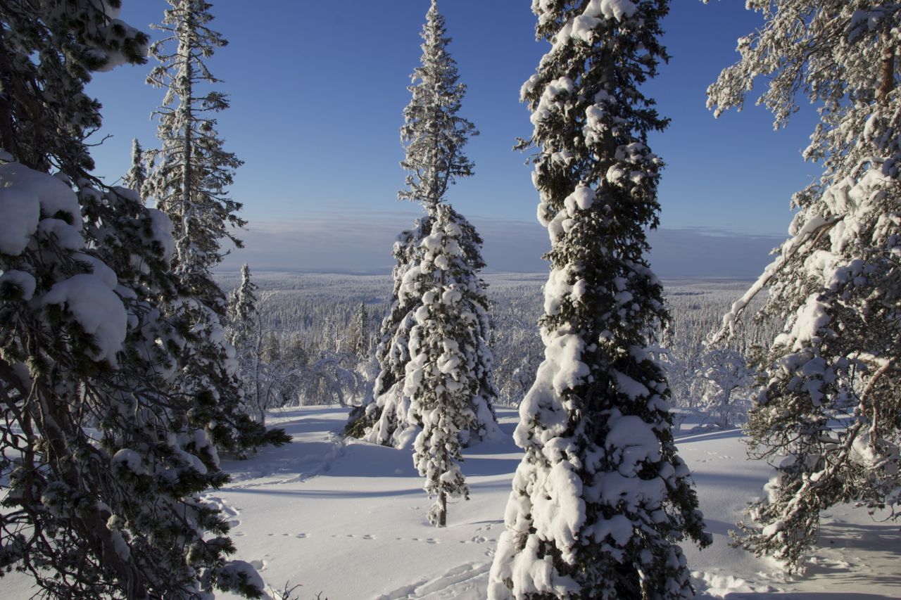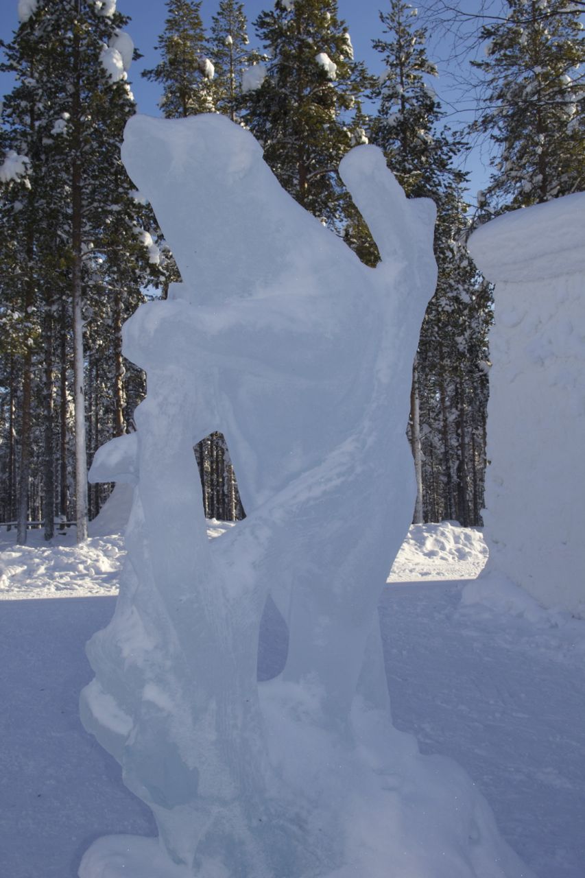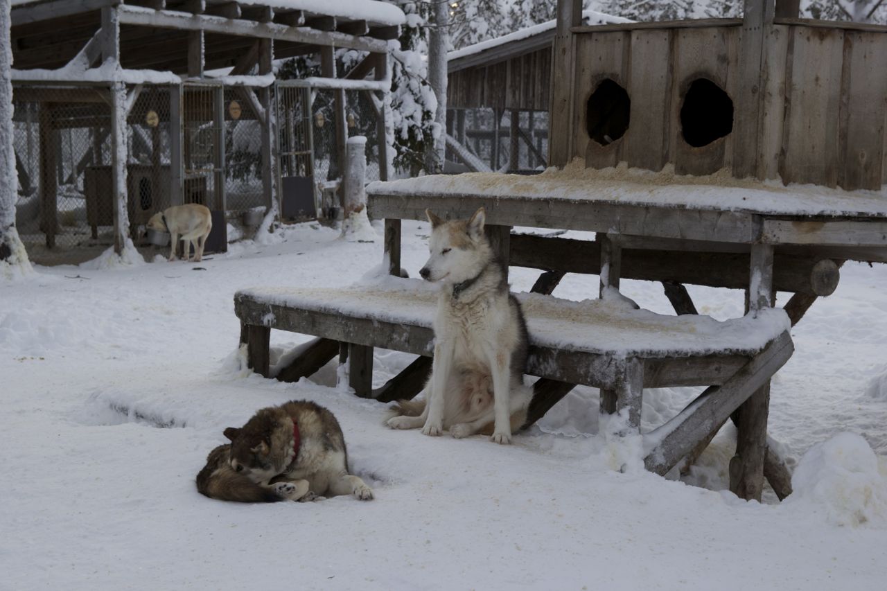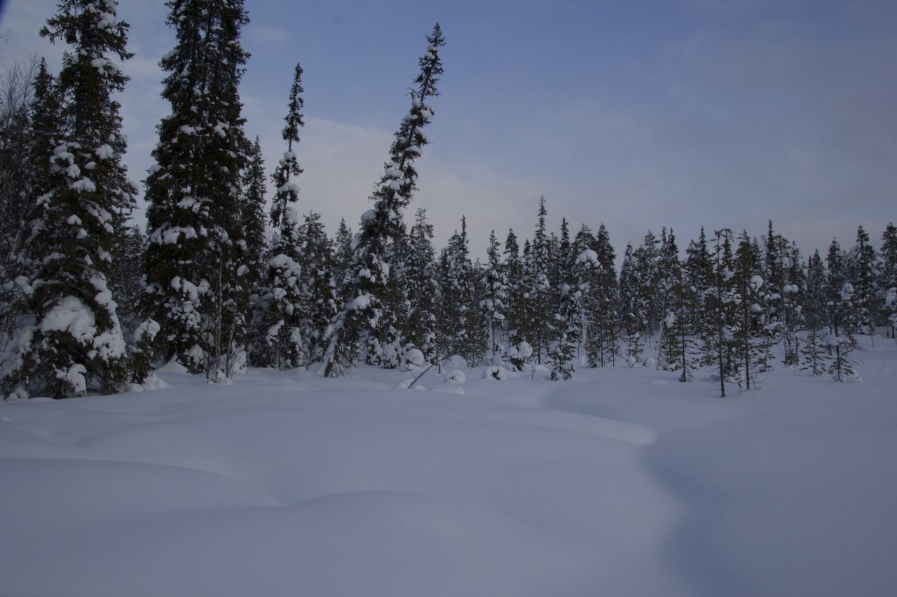 Am Nachmittag parkierten wir unser Auto bei der Kapelle und machten uns mit der Langlauf-Ausrüstung auf zum See Äkäslompolo. Dieser Ort hat seinen Namen aufgrund des Sees. Das Dorf ist um den See herum entstanden und im Winter ist dieser gefroren und auf dem Eis hat es eine Schneeschicht mit einer Loipe zum Langlaufen. So fuhren wir eine Runde auf dem See. Dabei kam uns unsere Langlauf-Lehrerin von Montag entgegen und lobte uns und freute sich, dass wir nun auf eigene Faust unterwegs waren. Sie hatte heute ihren freien Tag und war deshalb draussen unterwegs bei diesem schönen Wetter, sagte sie. So schön war das Wetter nicht, so grau war es noch nie, dafür aber nur -2 Grad.