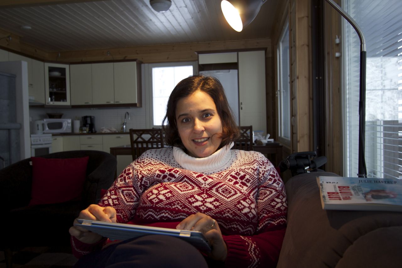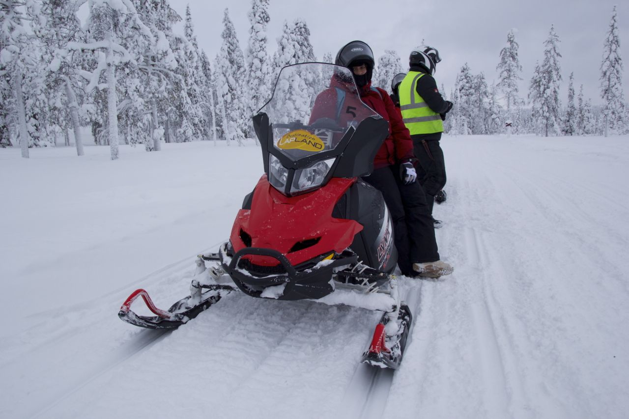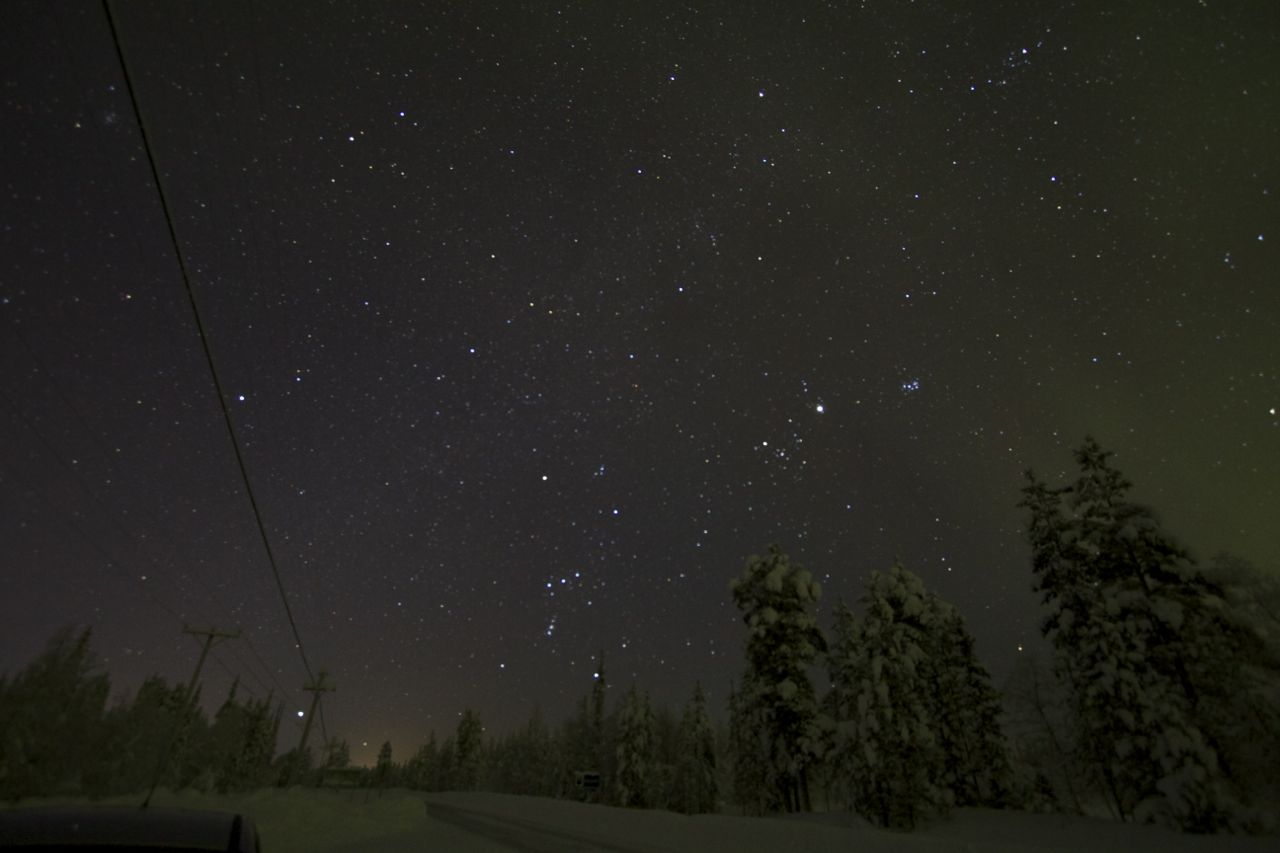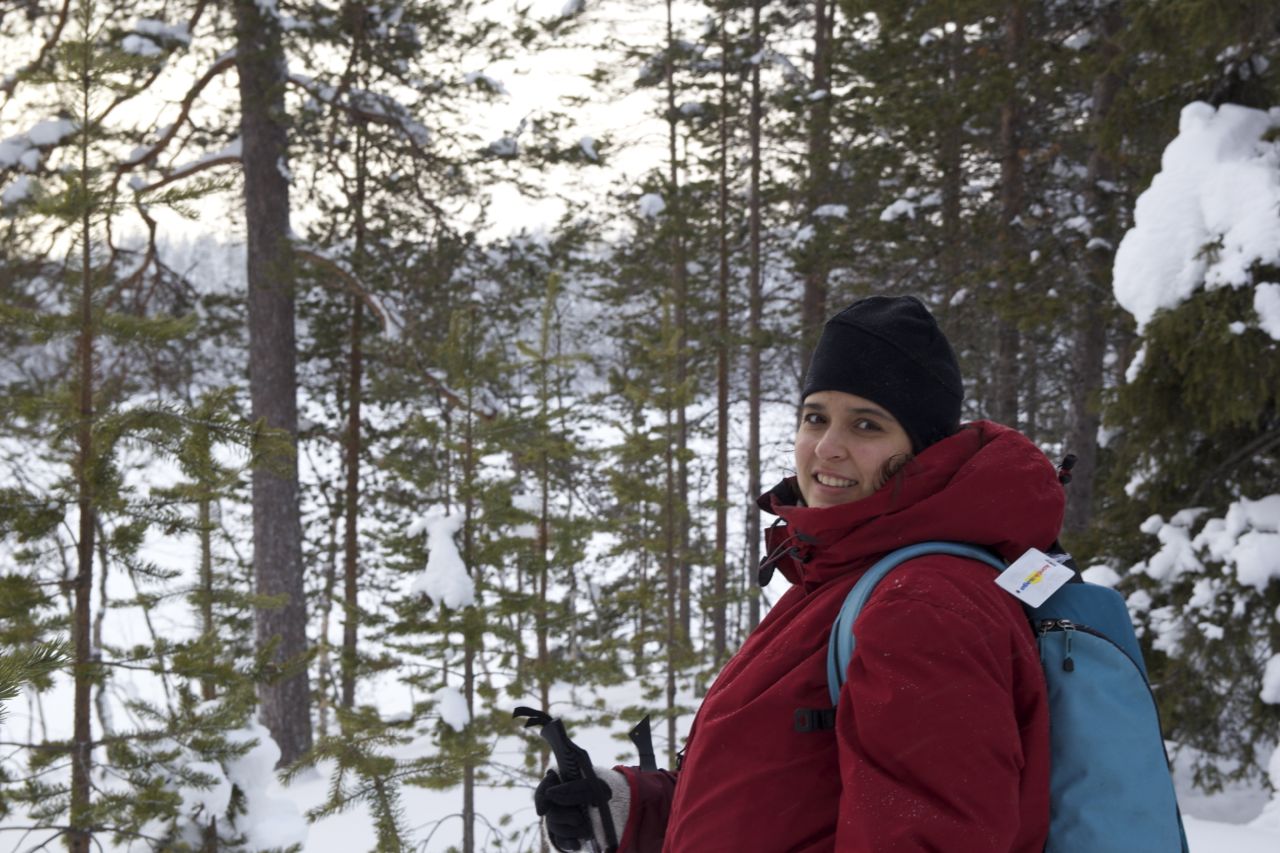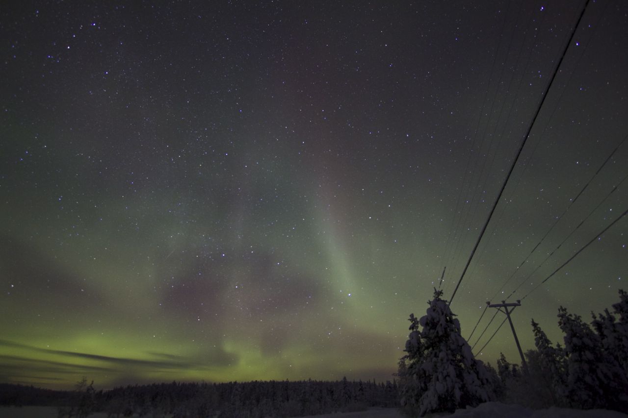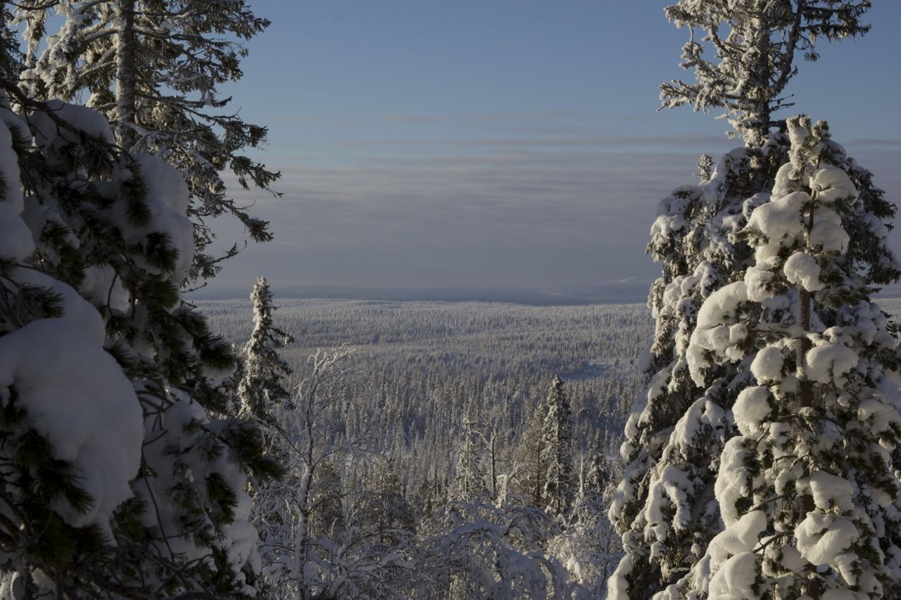 Am Nachmittag parkierten wir unser Auto bei der Kapelle und machten uns mit der Langlauf-Ausrüstung auf zum See Äkäslompolo. Dieser Ort hat seinen Namen aufgrund des Sees. Das Dorf ist um den See herum entstanden und im Winter ist dieser gefroren und auf dem Eis hat es eine Schneeschicht mit einer Loipe zum Langlaufen. So fuhren wir eine Runde auf dem See. Dabei kam uns unsere Langlauf-Lehrerin von Montag entgegen und lobte uns und freute sich, dass wir nun auf eigene Faust unterwegs waren. Sie hatte heute ihren freien Tag und war deshalb draussen unterwegs bei diesem schönen Wetter, sagte sie. So schön war das Wetter nicht, so grau war es noch nie, dafür aber nur -2 Grad.