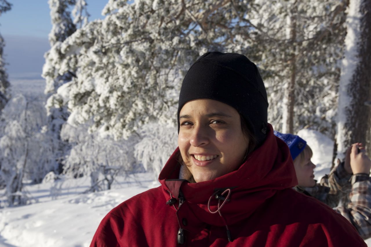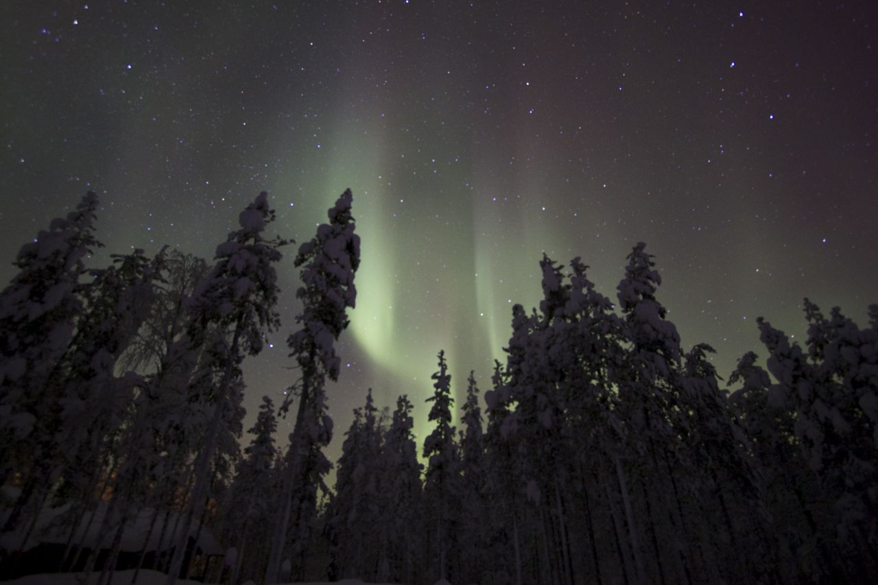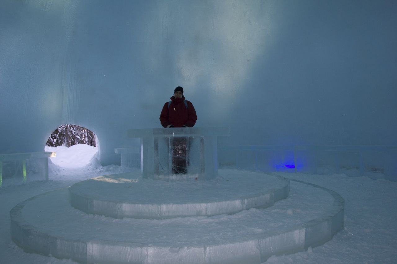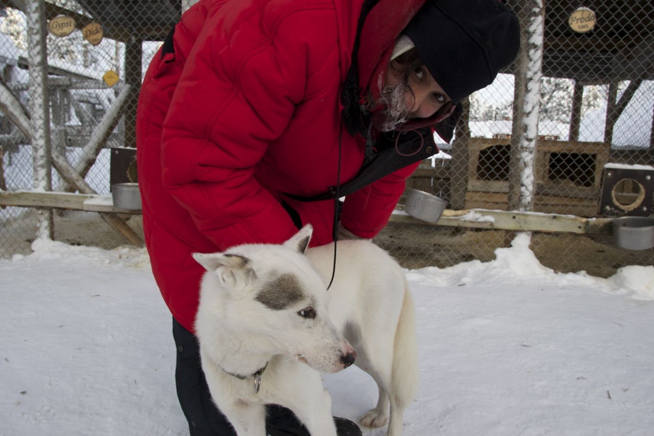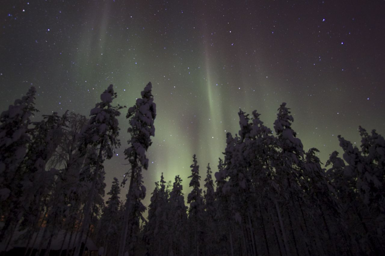 Am Nachmittag parkierten wir unser Auto bei der Kapelle und machten uns mit der Langlauf-Ausrüstung auf zum See Äkäslompolo. Dieser Ort hat seinen Namen aufgrund des Sees. Das Dorf ist um den See herum entstanden und im Winter ist dieser gefroren und auf dem Eis hat es eine Schneeschicht mit einer Loipe zum Langlaufen. So fuhren wir eine Runde auf dem See. Dabei kam uns unsere Langlauf-Lehrerin von Montag entgegen und lobte uns und freute sich, dass wir nun auf eigene Faust unterwegs waren. Sie hatte heute ihren freien Tag und war deshalb draussen unterwegs bei diesem schönen Wetter, sagte sie. So schön war das Wetter nicht, so grau war es noch nie, dafür aber nur -2 Grad.