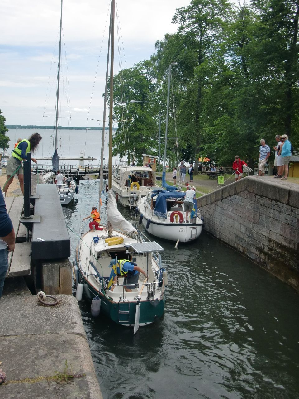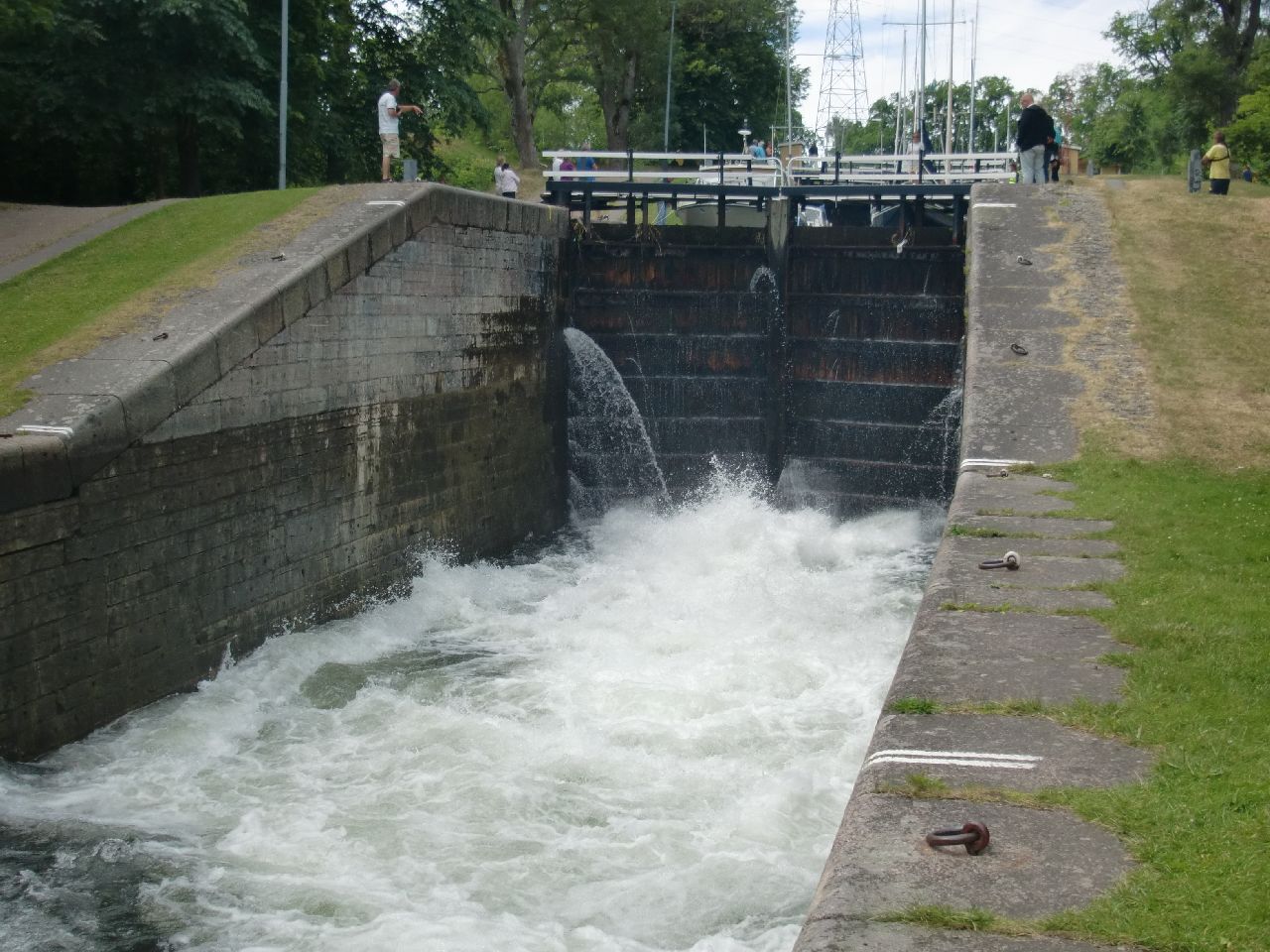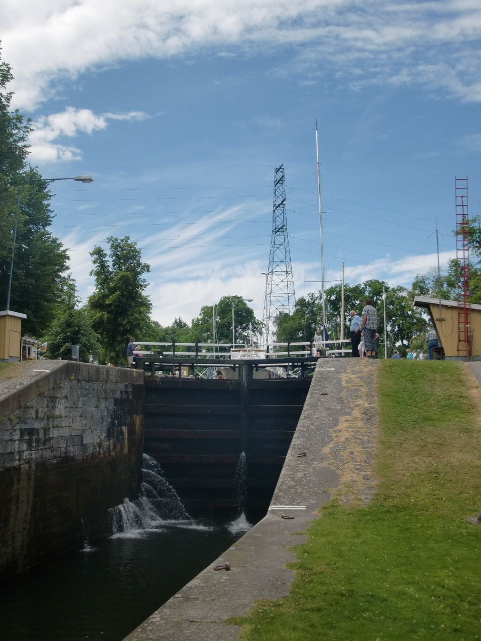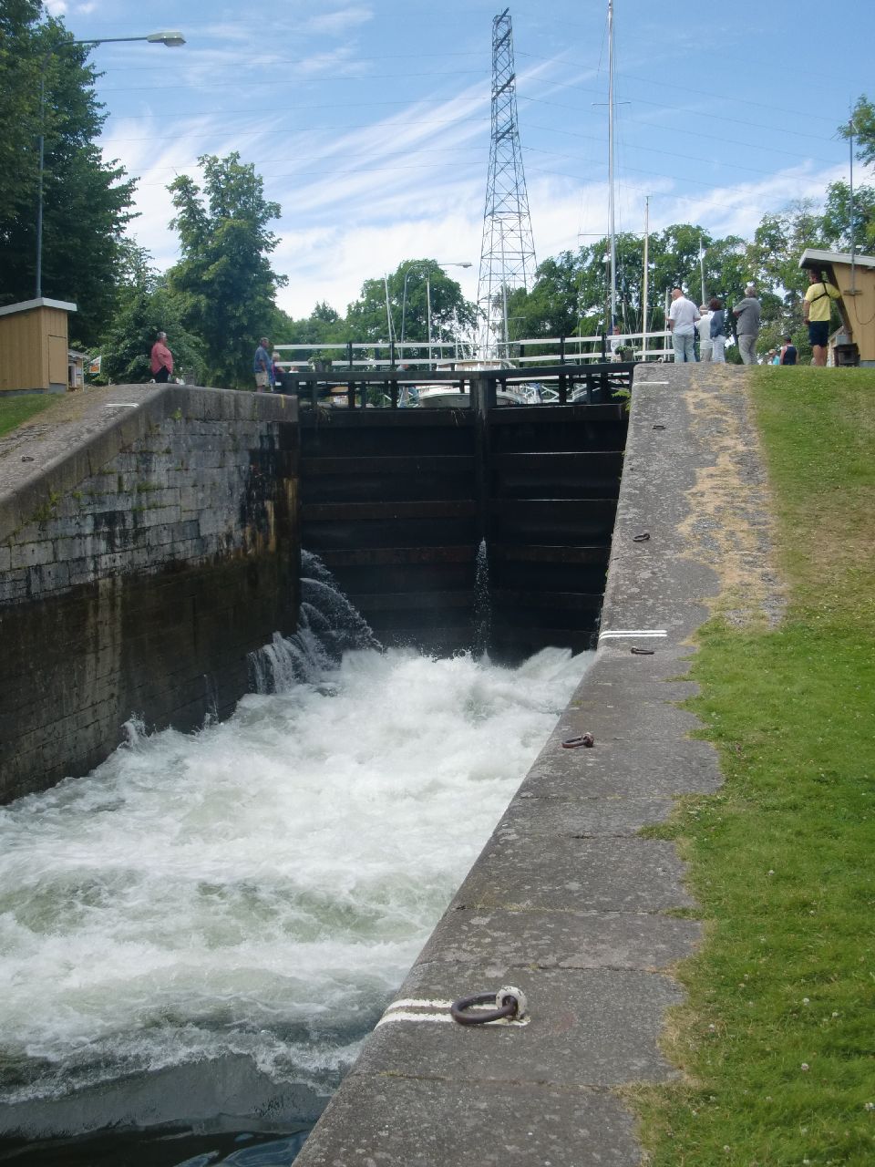 Heute morgen haben wir so richtig ausgeschlafen. Denn das Frühstücksbuffet ist hier bis 9:30 Uhr geöffnet (bei den anderen Vanderhemen, in denen wir bis jetzt waren, gabs nur bis 9:00 Uhr Frühstück). Als wir aufgestanden waren und unsere Balkontür öffneten, bliess uns ein heftiger Wind entgegen, auch das Wasser schlug Wellen und rauschte den ganzen Tag. Das Frühstück war klasse: Es gab richtig knusprige, noch warme Bröttchen (kein Schwamm-Brot wie bisher). Da das Wetter nur hart-gesottene an den Strand locken konnte, machten wir Südländer einen Ausflug nach Motala und schauten uns den Hafen und den Göta-Kanal an. Interessant waren dabei vor allem die Schleussen (Slussen). Zum Mittag waren wir wieder zurück in Vanderhem.