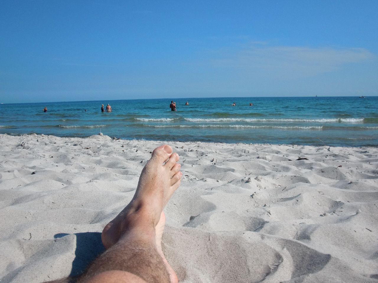Danach fuhren wir weiter Richtung Strand. Wir genossen nochmals die Sonne und das Meer. Es war zwar wieder kühler als in Mellbystrand aber dafür sehr klar. Wir gingen dreimal ins Wasser und es war jedesmal eine richtige Erfrischung. An diesem Strandabschnitt wimmelte es von Menschen. Es war aber nicht laut. Um 17:00 Uhr machten wir uns auf nach Trelleborg und bezogen unser Zimmer. Leider müssen wir morgen schon um 6:30 Uhr für die Fähre bereit sein, so dass das Frühstück in dieser Unterkunft leider ausfällt.